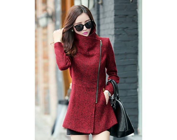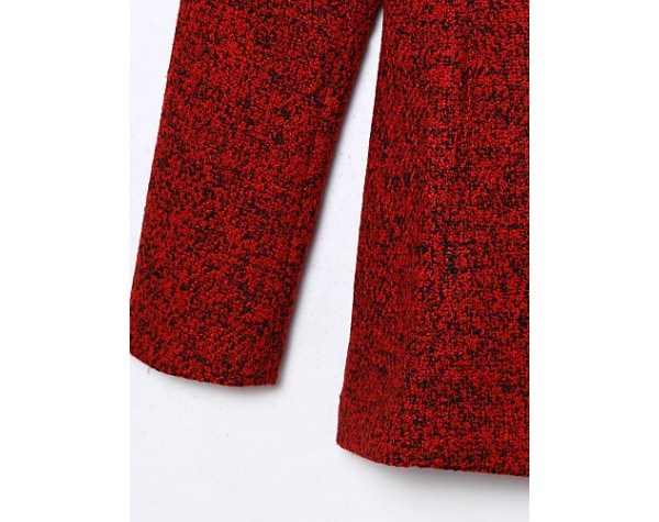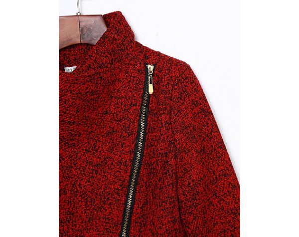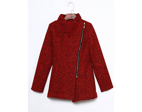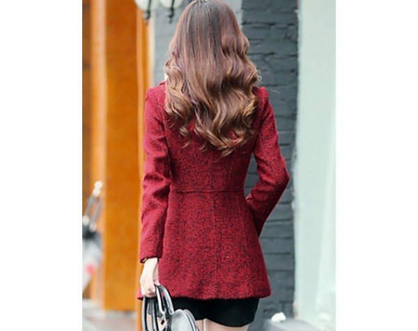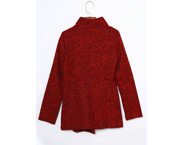Women's Casual/Daily Simple Coat,Print Shirt Collar Long Sleeve Winter Red / Gray Wool Thick