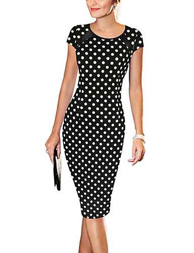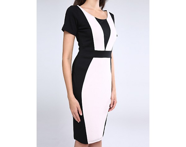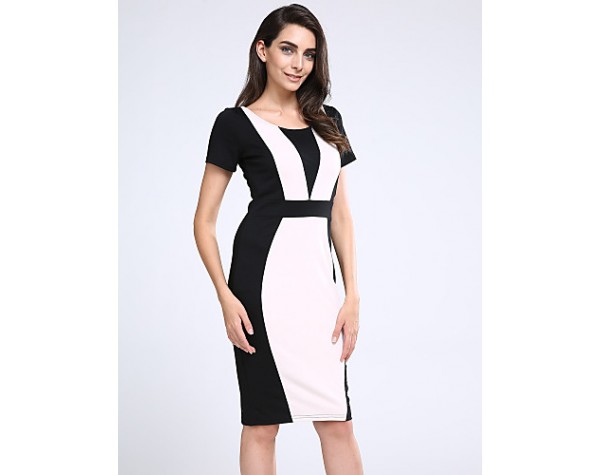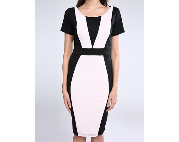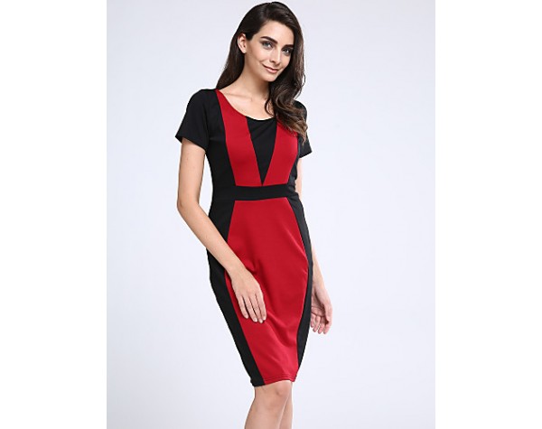 Women's Going out Vintage / Simple / Cute / Street chic A Line / Bodycon Dress,Patchwork Round Neck Knee-length Short SleeveRed / Beige /