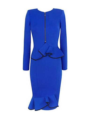 GenderWomen's,OccasionPlus Size,Work,SeasonFall,ColorBlue,PatternSolid,DesignRuffle,DetailsWithout L.....