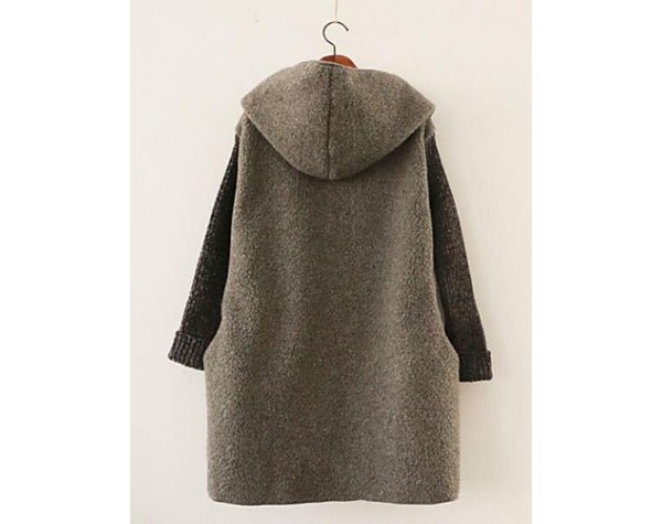 Women's Plus Size Street chic Coat,Solid Hooded Long Sleeve Winter White / Gray / Multi-color Cotton Thick