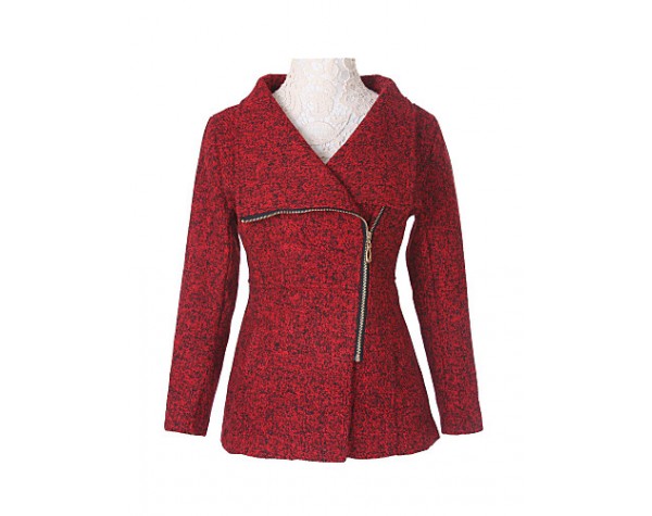 Product Code: Women's Coat,Solid Long Sleeve Winter Red / Gray Wool / Others T