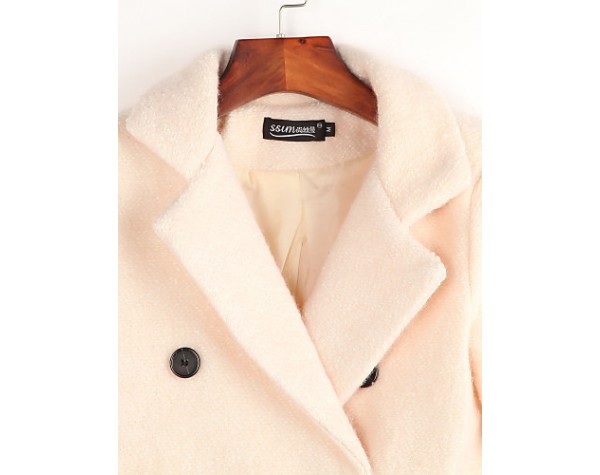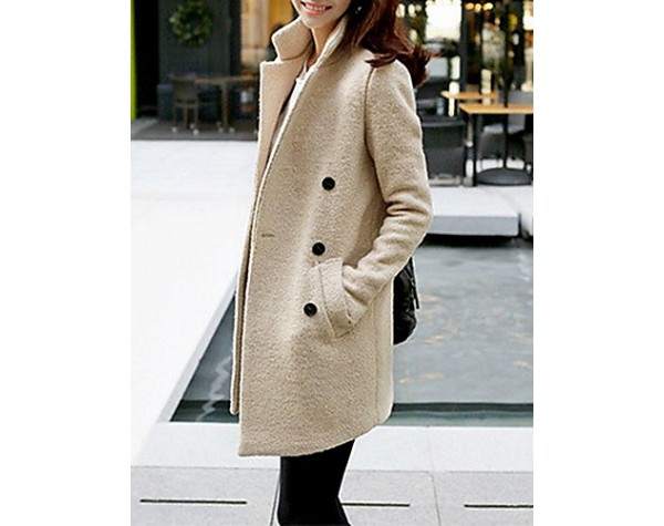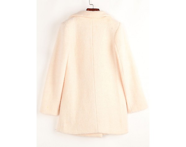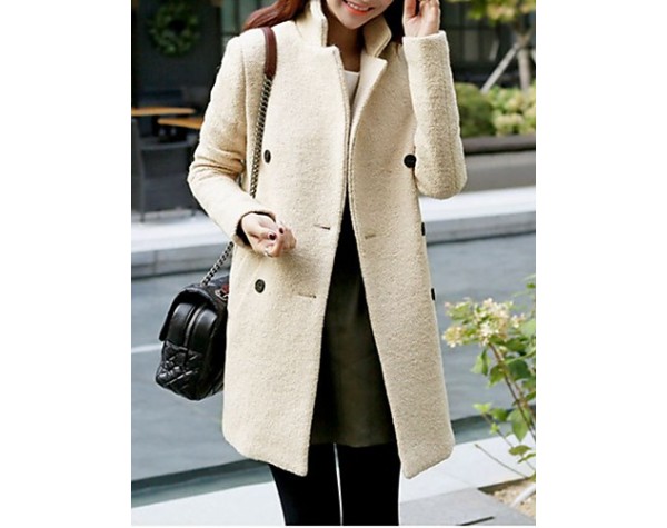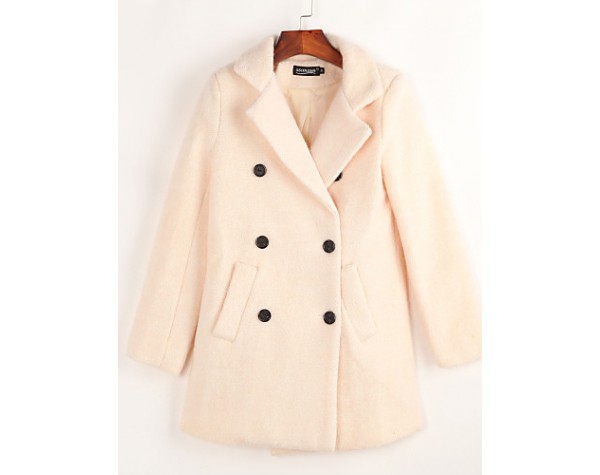 Women's Casual/Daily Simple Coat,Solid Notch Lapel Long Sleeve Fall Beige Wool Medium