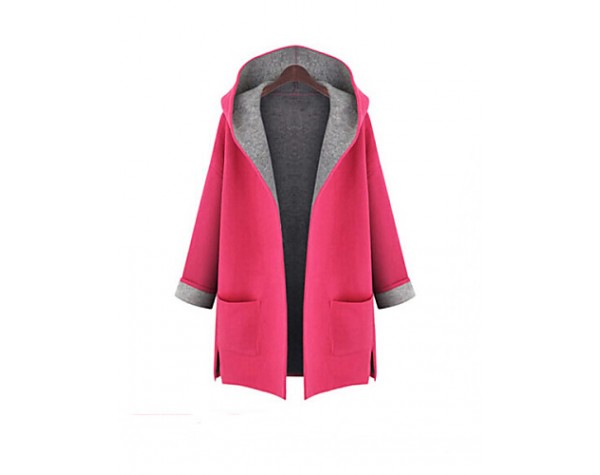Women's Plus Size Trench Coat,Color Block Hooded Long Sleeve Fall Red / Yellow Wool / Others Medium