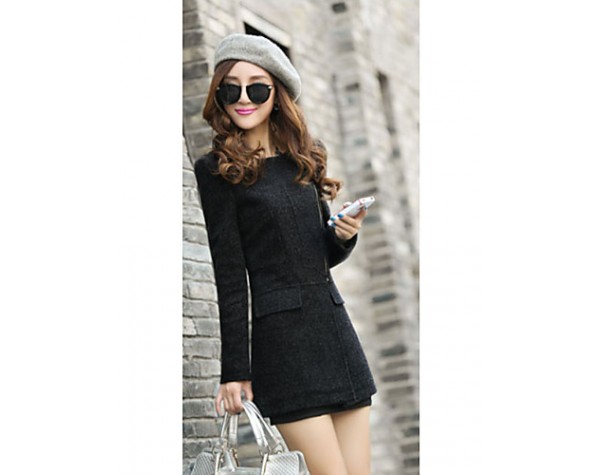 Women's Sexy Coat,Solid V Neck Long Sleeve Fall Black / Gray Wool / Cotton / Others Thick