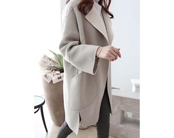 Women's Casual/Daily Simple CoatSolid Round Neck Long Sleeve Winter Gray Wool Thick