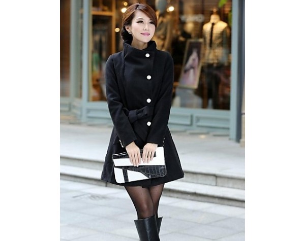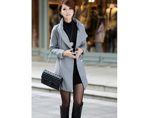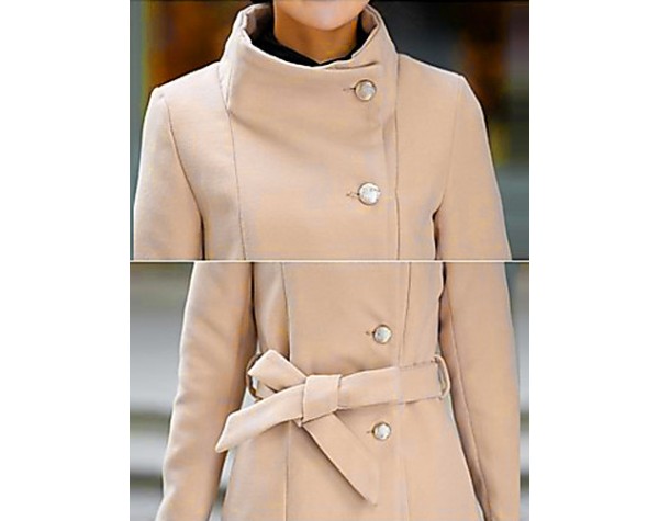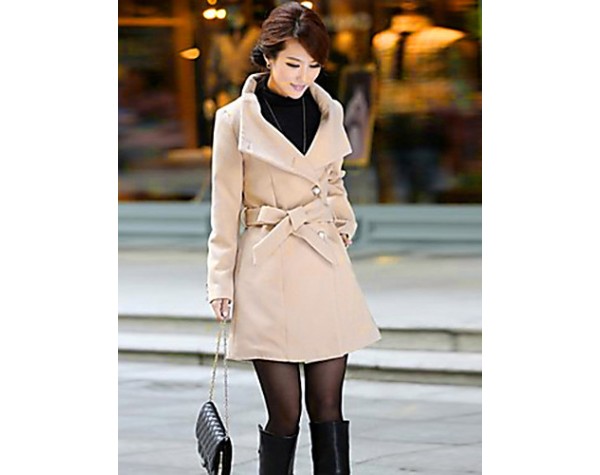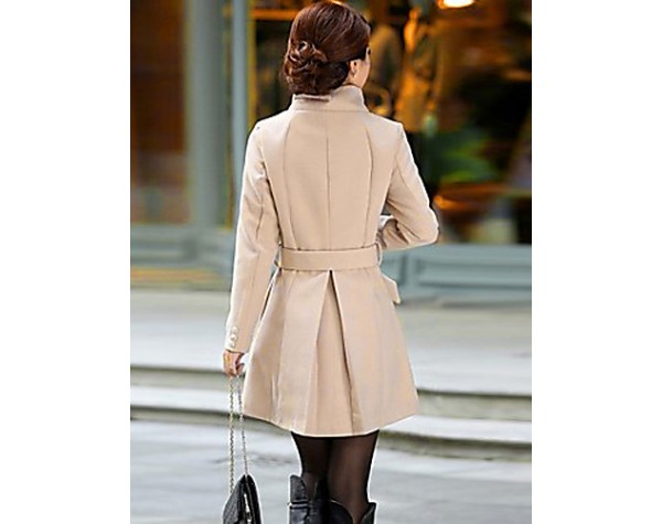 Women's Vintage / Cute Trench Coat,Solid Long Sleeve All Seasons Beige / Black / Gray Wool Medium