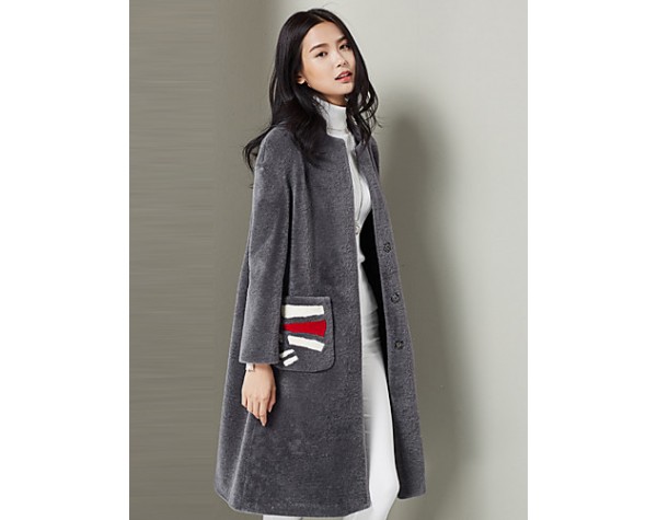 Women's Casual/Daily Simple Fur CoatSolid Asymmetrical Long Sleeve Fall / Winter Gray Wool Thick