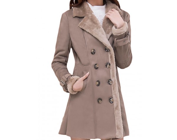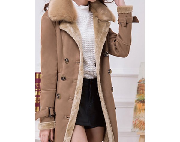 Women's Plus Size Simple Fur Coat,Solid Shirt Collar Long Sleeve Winter Brown Wool Thick