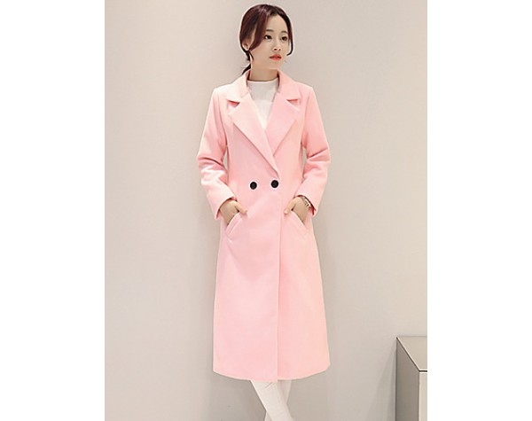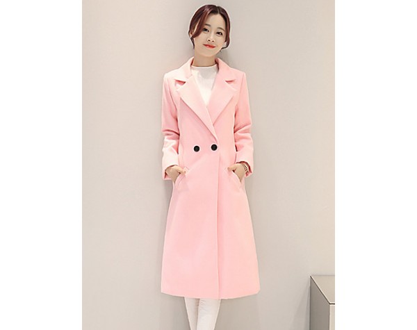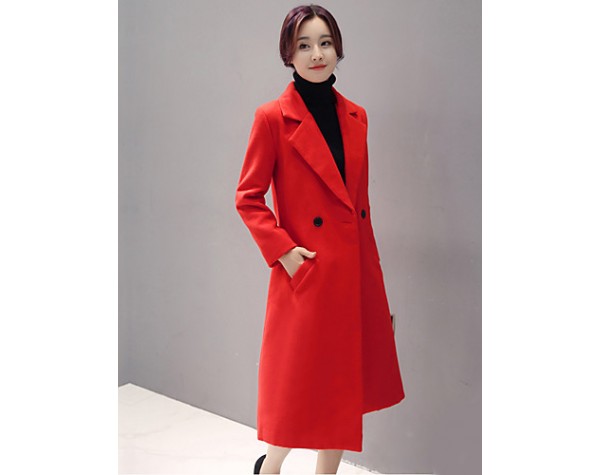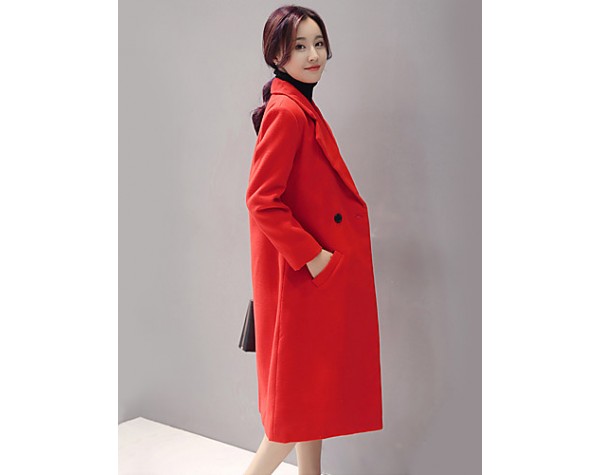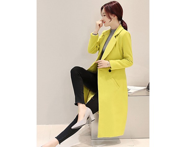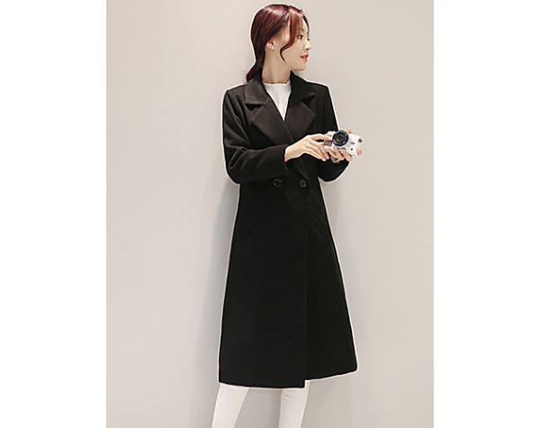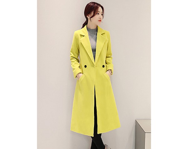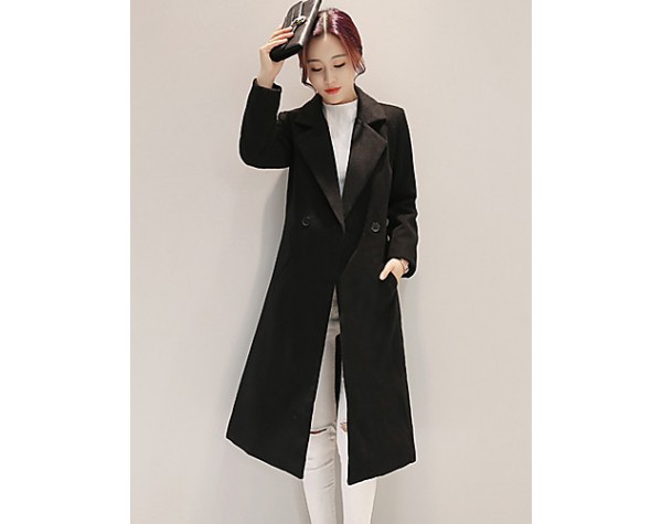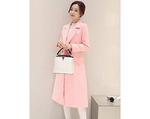 Fall Winter Going out Casual Women's Coat Solid Color Suit Collar Long Sleeve Long Section Maone Overcoat More Colors