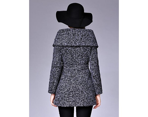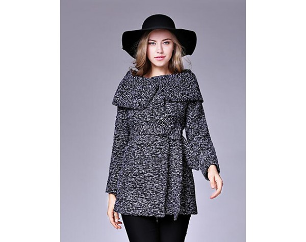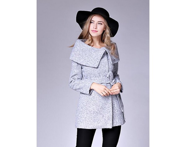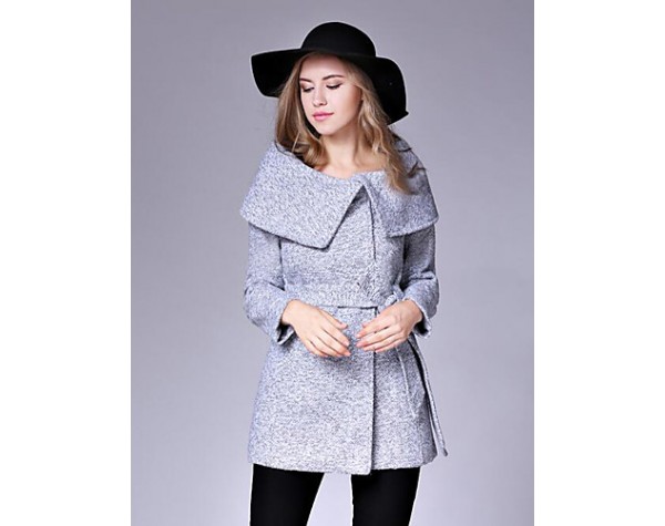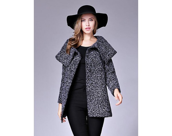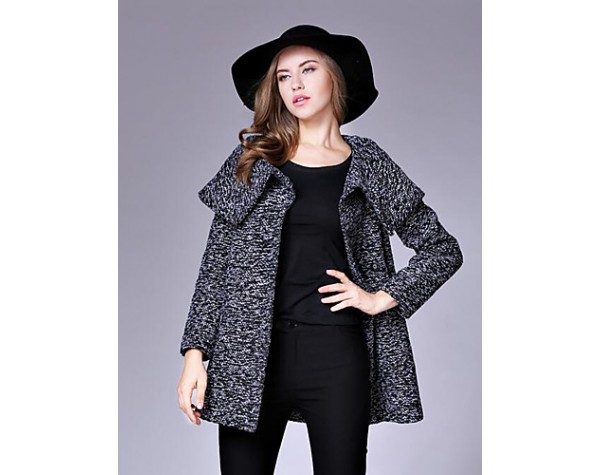 Women's Casual/Daily Street chic CoatSolid Shirt Collar Long Sleeve Fall / Winter Black / Gray Wool Medium