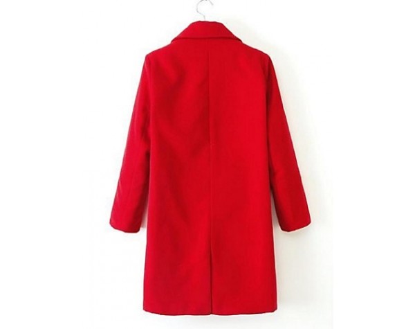 Women's Casual/Daily Plus Size Pea Coats,Solid Shirt Collar Long Sleeve Winter Red Wool