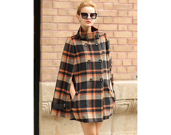 Women's Casual/Daily Simple CoatCheck Turtleneck Long Sleeve Spring / Fall Brown Wool Medium