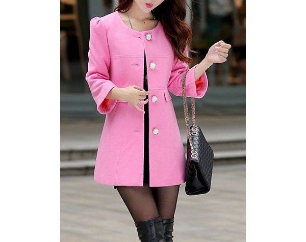 Women's Casual/Daily Simple Coat,Solid Notch Lapel Long Sleeve Fall Pink / White / Yellow Wool Medium