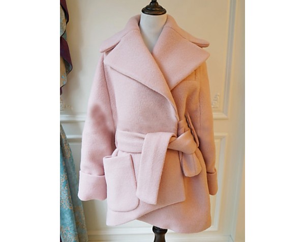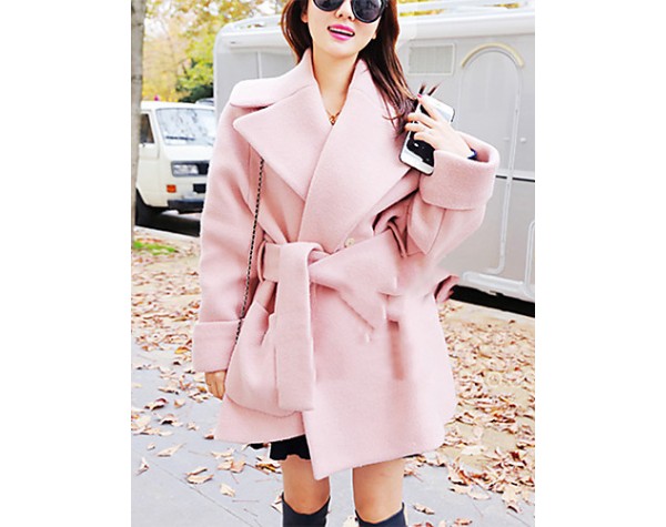 Women's Casual/Daily Simple Coat,Solid Shirt Collar Long Sleeve Winter Pink / Gray Wool Thick