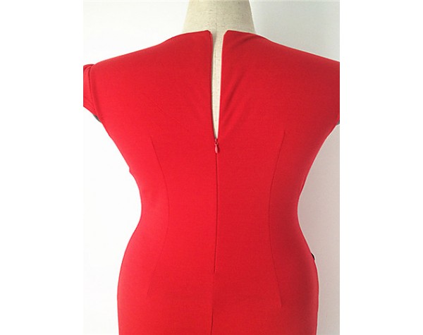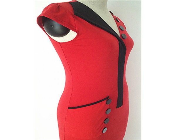 Product Code: Women's Vintage V Neck Button Dress , Cotton Blends Red Bodycon/