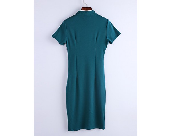 Product Code: Work Bodycon Dress,Solid Stand Knee-length Short Sleeve Red / Bl