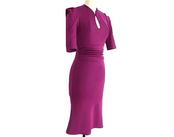 Product Code: Women's Solid Black/Green/Purple Dress,Bodycon Halter Puff Sleev