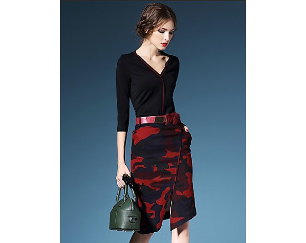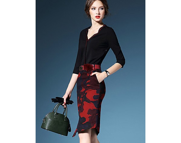Women's Patchwork Black DressCasualWork V NeckSleeve