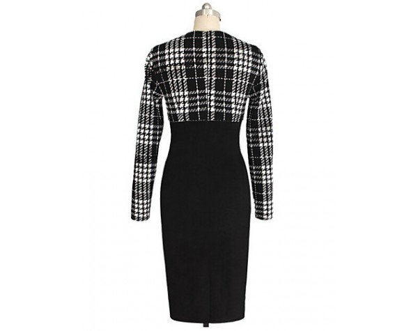 Women's Vintage Fashion New Patchwork Round Neck Long Sleeve Bodycon Dress