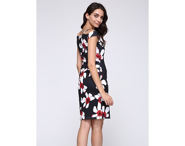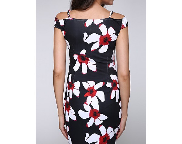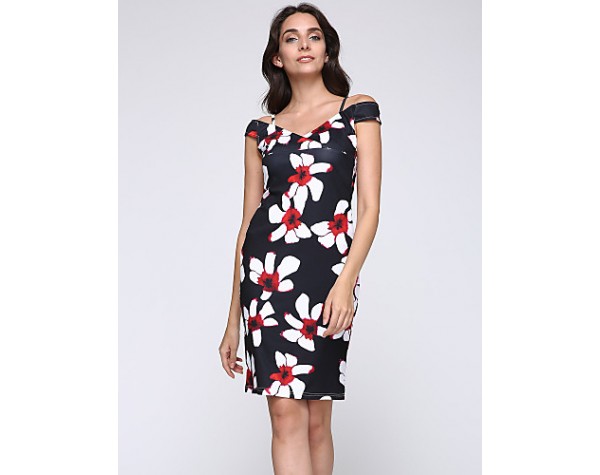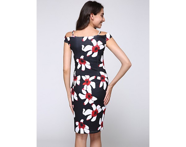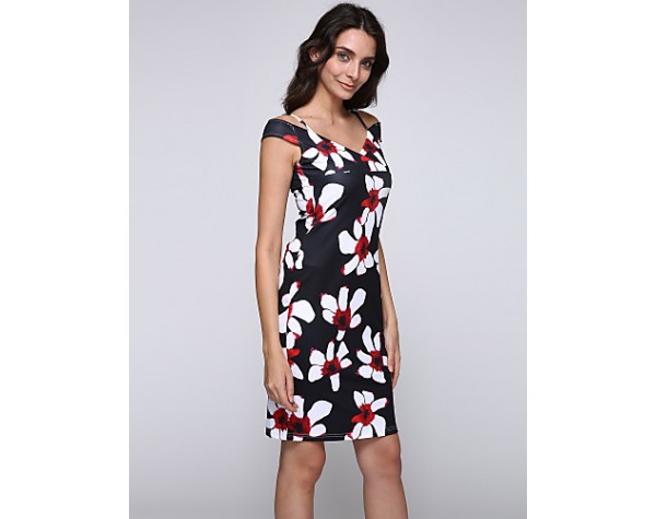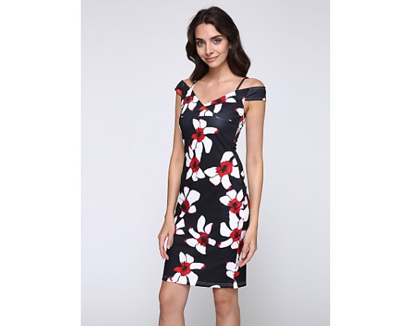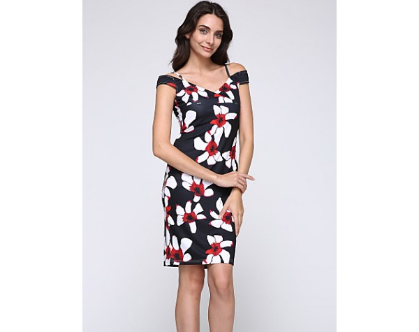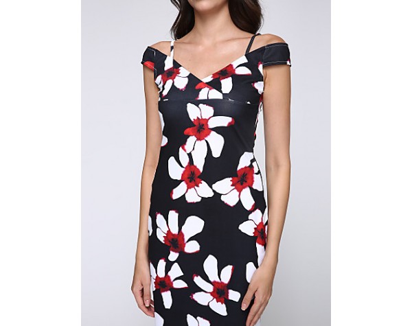 Product Code: Women's Sexy Floral Bodycon Dress , V Neck Knee-length Cotton /