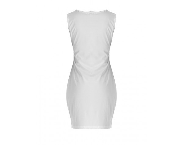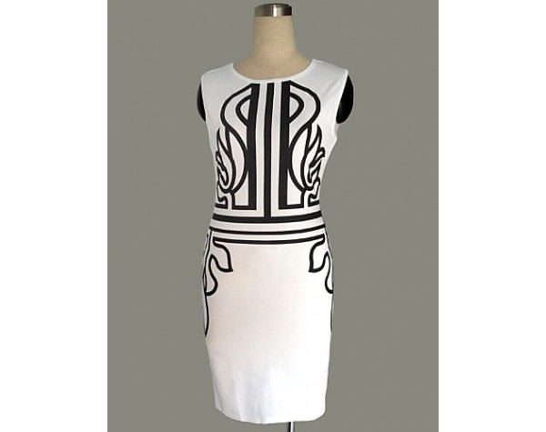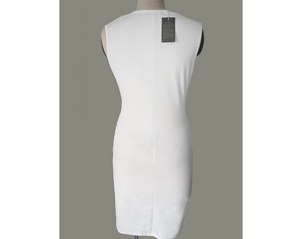 Women's Plus Size White Round Neck Midi Dress, Cotton Blends Knee-length Sleeveless