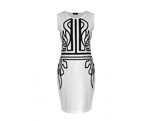 Product Code: Women's Plus Size White Round Neck Midi Dress, Cotton Blends Kne