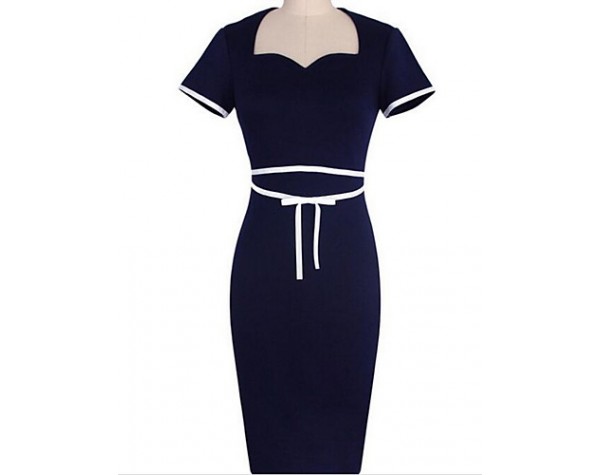 Product Code: Women's Simple Solid Bodycon Dress,Boat Neck Above Knee Cotton