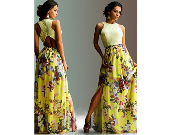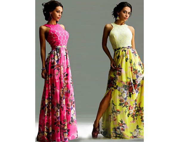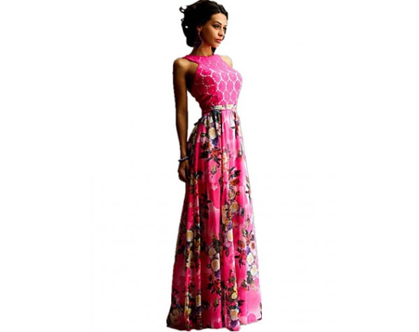 Product Code: Women's Sexy / Boho Floral Sheath / Swing Dress , Crew Neck Maxi