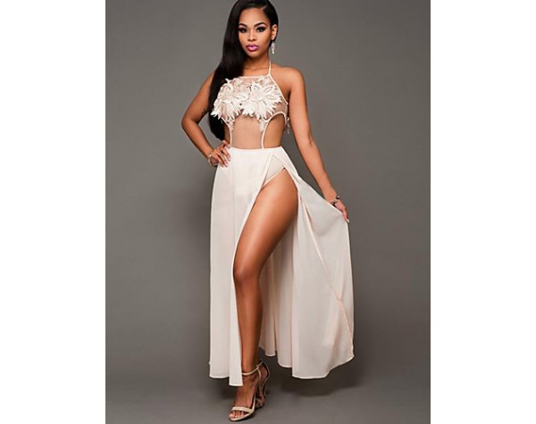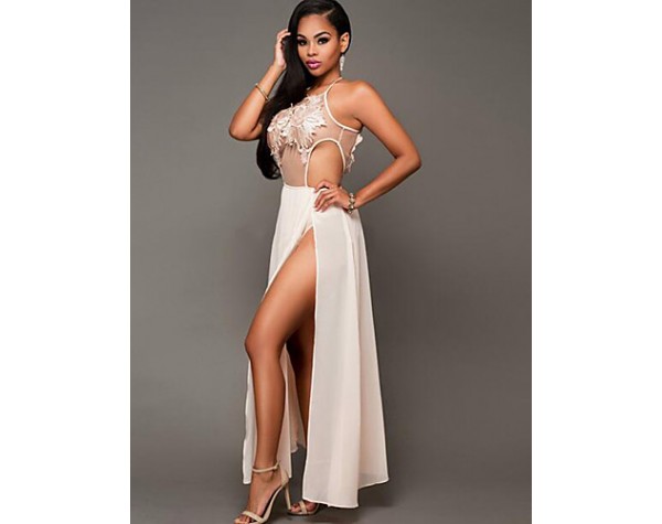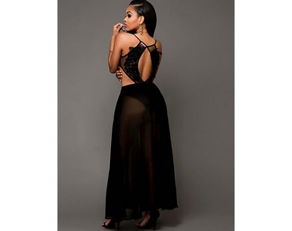 Women's Casual/Daily Sexy / Street chic Sheath See-through Dress,Patchwork Lace Mesh Strap Maxi Sleeveless