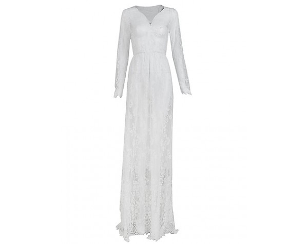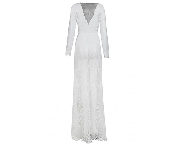 Women's sexy Perspective Deep V NeckLace SkirtLonguette (Lace/Polyester)