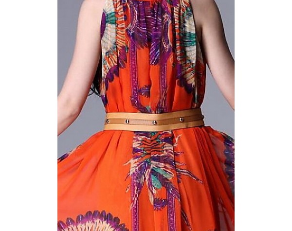 Product Code: Beach Swing Dress,Print Maxi Sleeveless Yellow Summer Inelastic