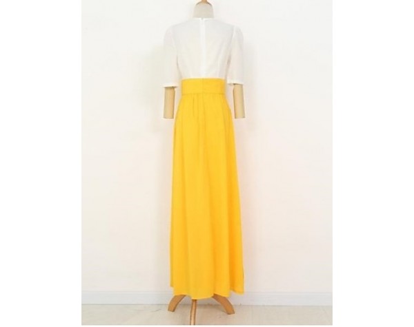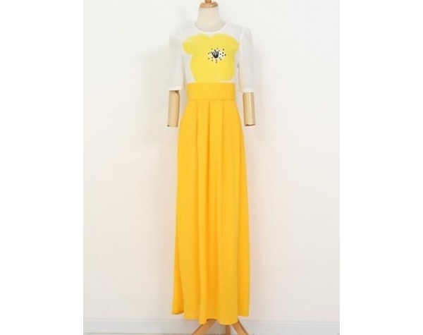 Product Code: Women's Fashion Round Neck Print Color Block Swing Maxi Dress