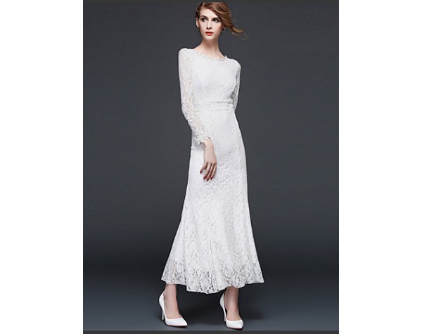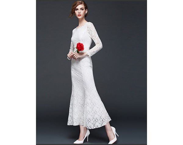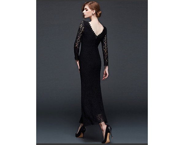 Women's Sexy Lace Halter Hollowing Round Neck Long Sleeve Party Cocktail Long Dress