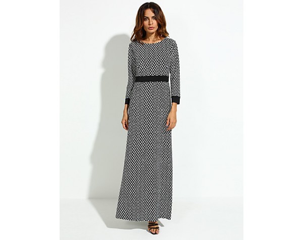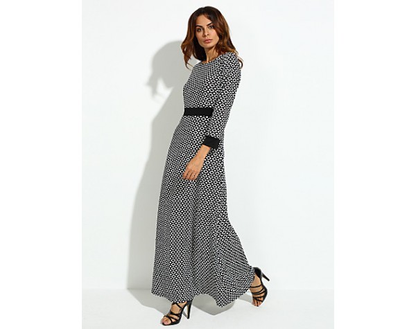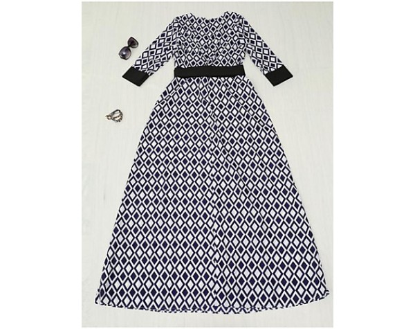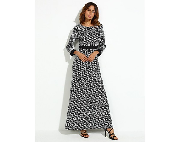 Product Code: Women's Print Black Dress , Party Round Neck Long Sleeve