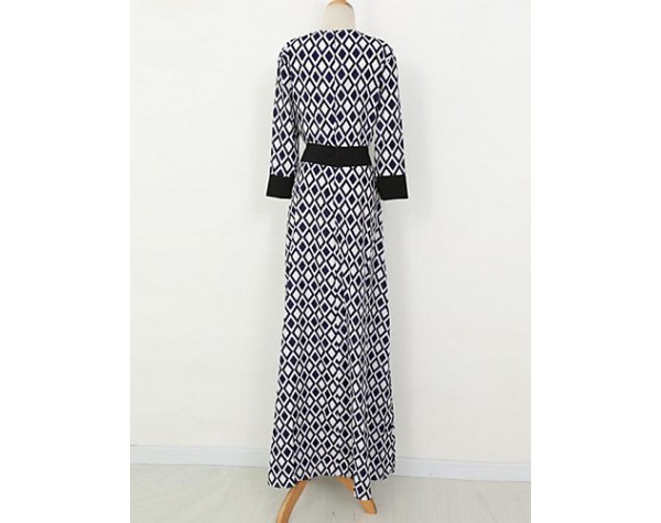 Women's Print Black Dress , Party Round Neck Long Sleeve