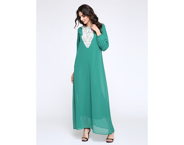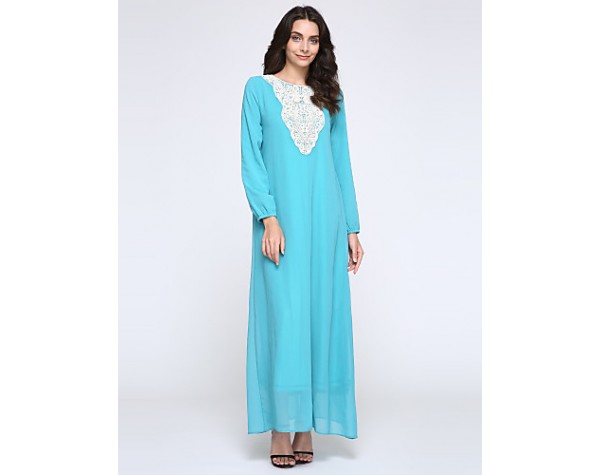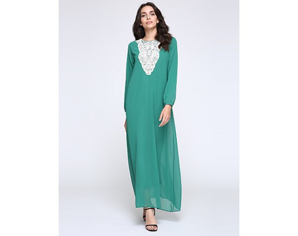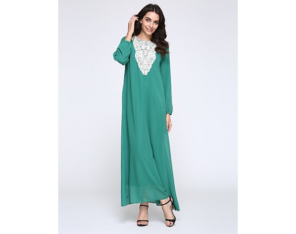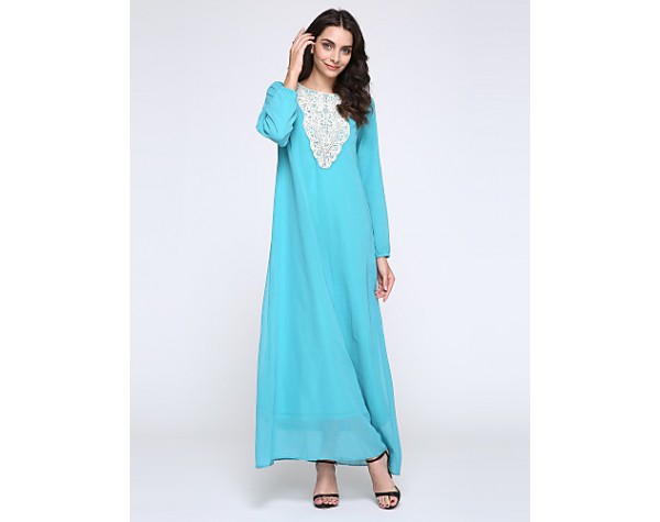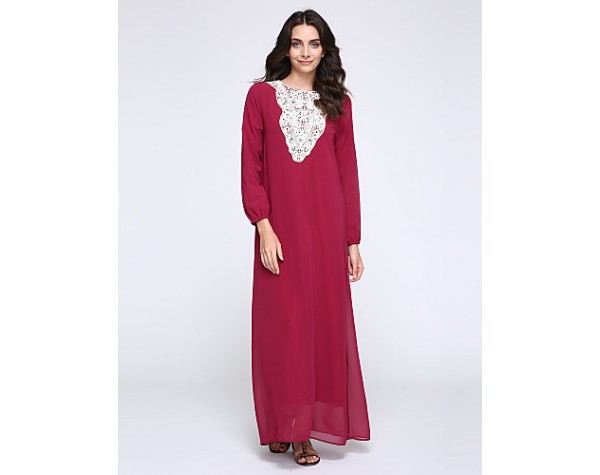 Product Code: Women's Simple Loose / Chiffon Dress,Solid Round Neck Maxi Long