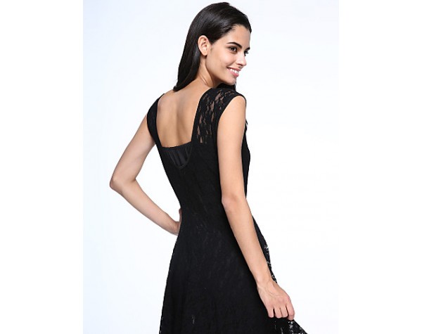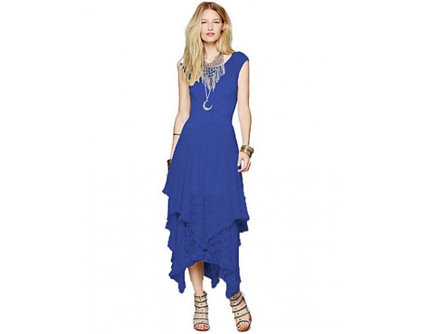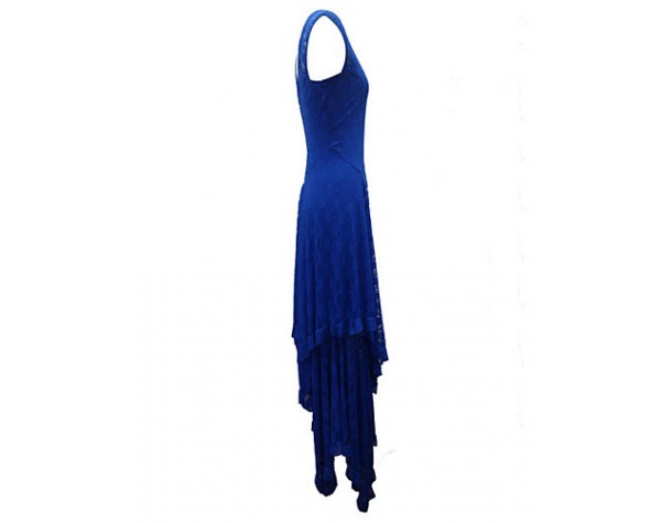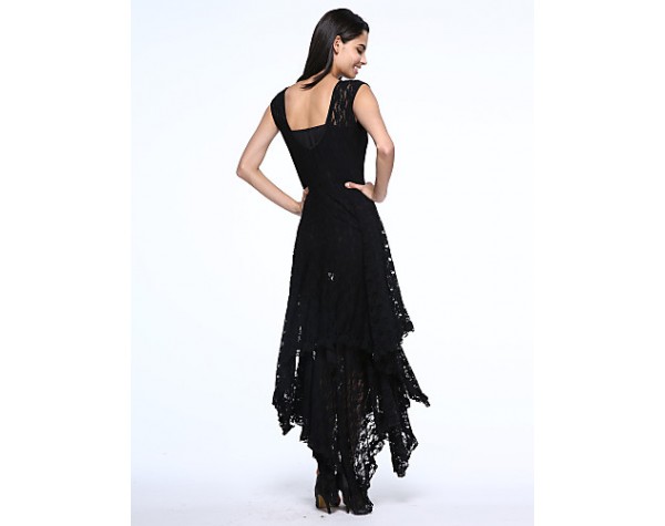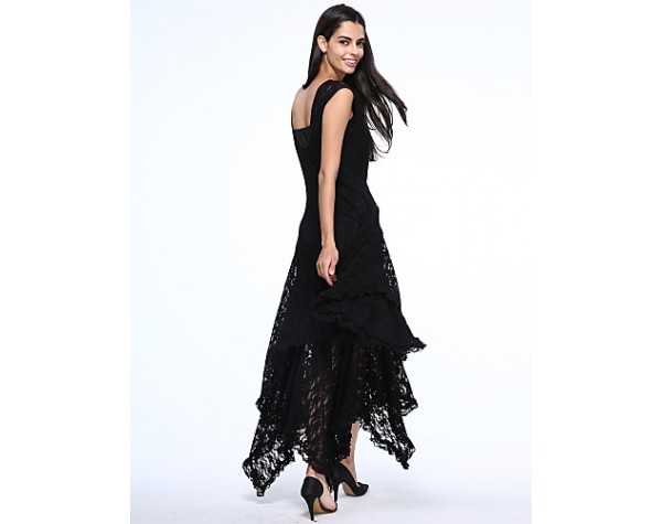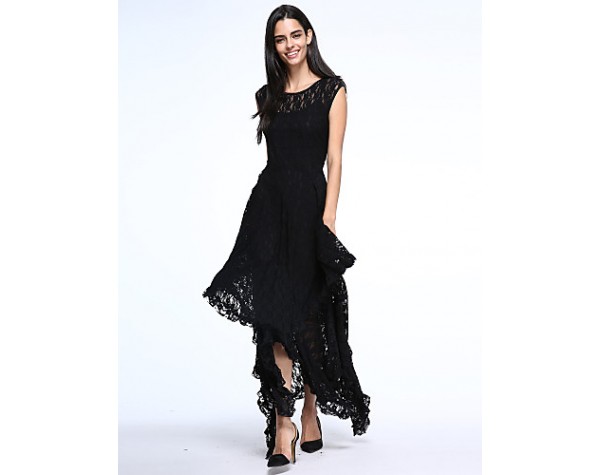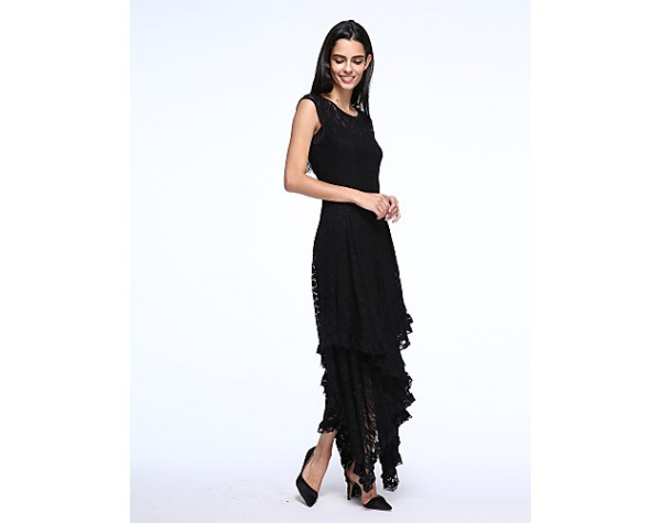 Women's Beach Lace / Skater Dress,Solid Round Neck Maxi Sleeveless Blue / Black Acrylic Spring