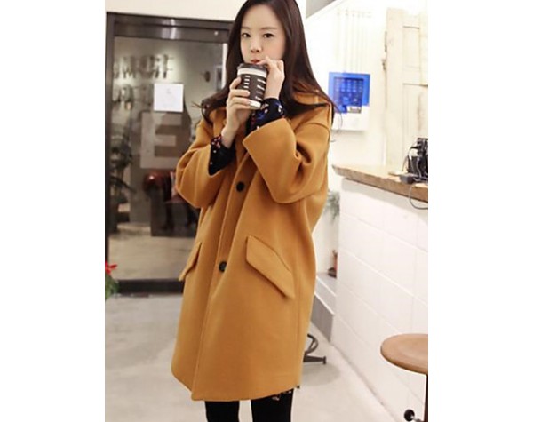 Women's Casual/Daily Simple Coat,Solid Shirt Collar Long Sleeve Winter Blue / Pink / Yellow Wool Thick