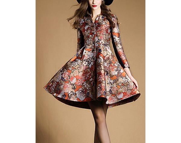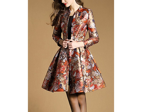 Product Code: Women's VintageCoat,Solid Long Sleeve Winter Orange Others Thick
