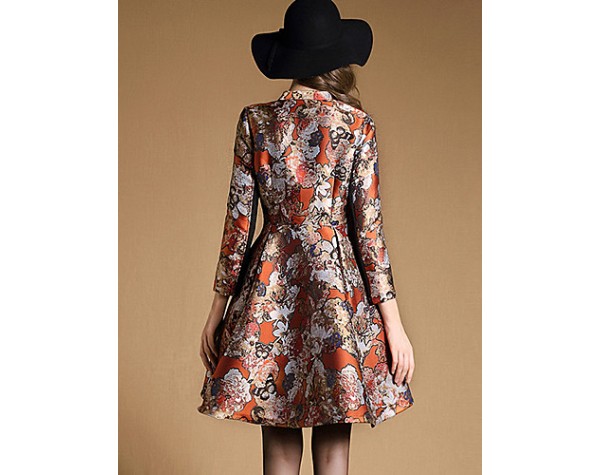 Women's VintageCoat,Solid Long Sleeve Winter Orange Others Thick
