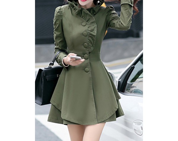 Women's Plus Size VintageCoat,Solid Long Sleeve Winter Pink / Green / Yellow Others Thick
