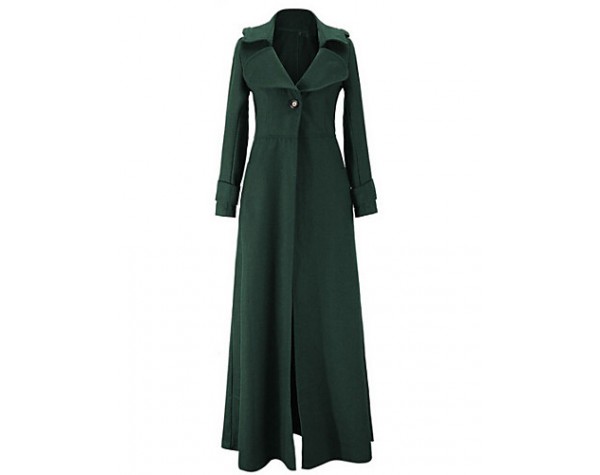 Women'sCoat,Solid Stand Long Sleeve Winter Blue / Red / Black / Green Wool / Others Medium