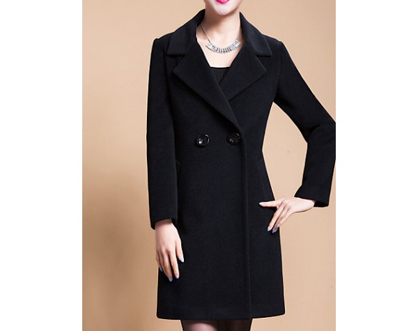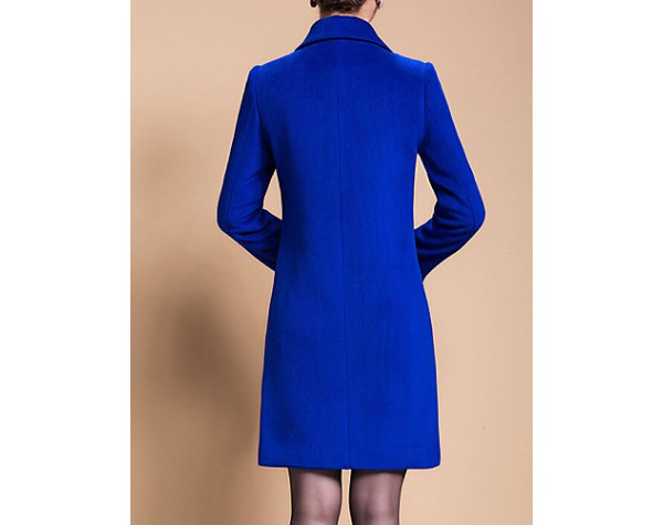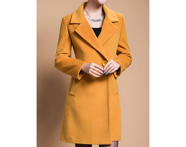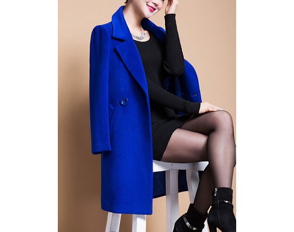 Women's Plus Size Coat,Solid Shirt Collar Long Sleeve Winter Blue / Black / Yellow Wool / Others Thick