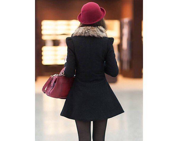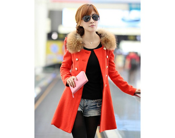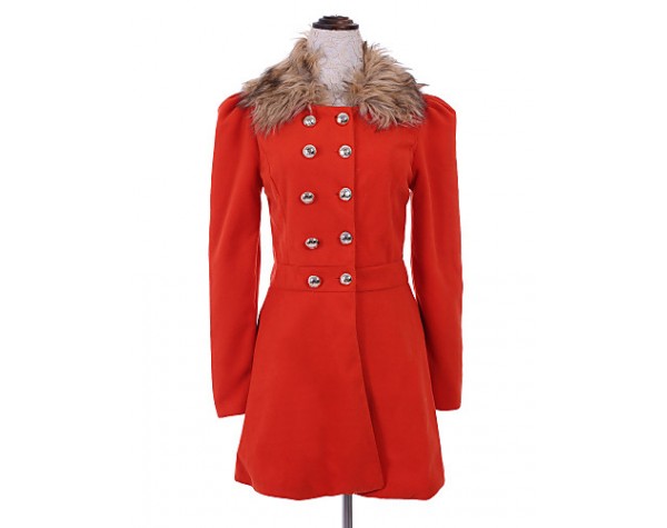 Women's Vintage Coat,Solid Shirt Collar Long Sleeve Winter Red / Black / Orange Wool / Others Thick