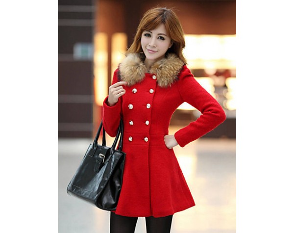 Product Code: Women's Vintage Coat,Solid Shirt Collar Long Sleeve Winter Red /