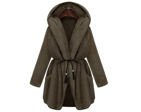 Women's Plus Size Simple Coat,Solid Hooded Long Sleeve Winter White / Brown / Green Nylon Thick